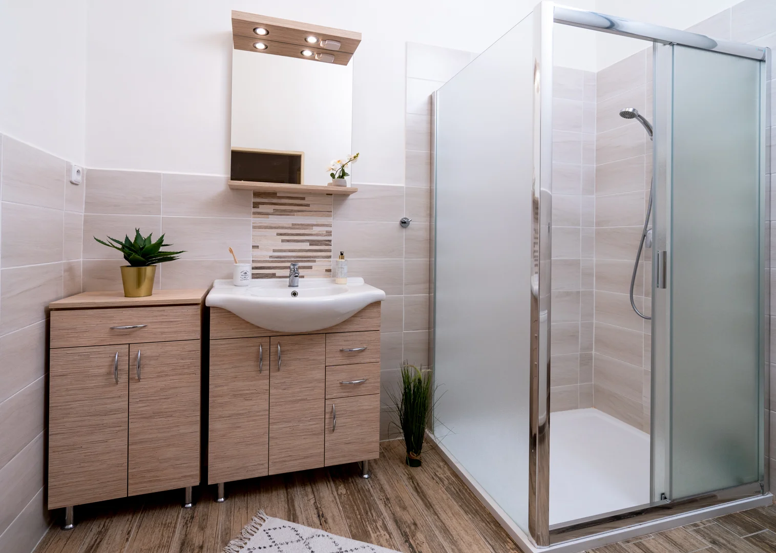 Byt je po celkové rekonstrukci ve velmi dobrém stavu. Okna jsou orientována do vnitrobloku, takže po jejich otevření neuslyšíte ruch velkoměsta, ale pocítíte atmosféru tichého dvora mimo dosah ruchu z ulice.