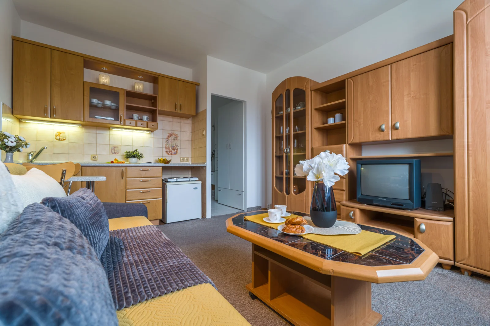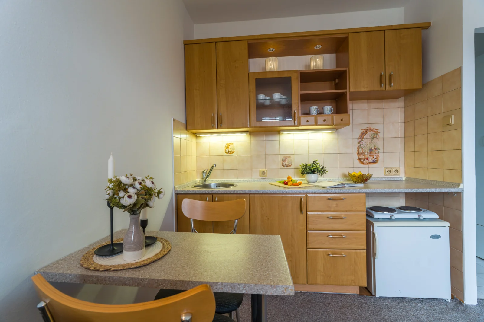 Nabízíme na prodej útulné 1+kk o celkové podlahové ploše 21,54 m2, jejíž součástí je i sklep 2,15 m2. Byt se nachází ve 3. NP ze tří – tedy v posledním patře bez sousedů nad hlavou. Okno je orientované do klidné zahrady za domem, takže vás nečeká ruch ulice, ale zeleň a soukromí.