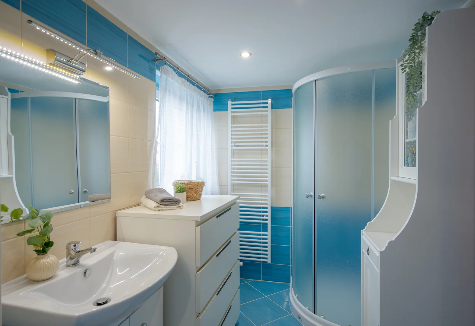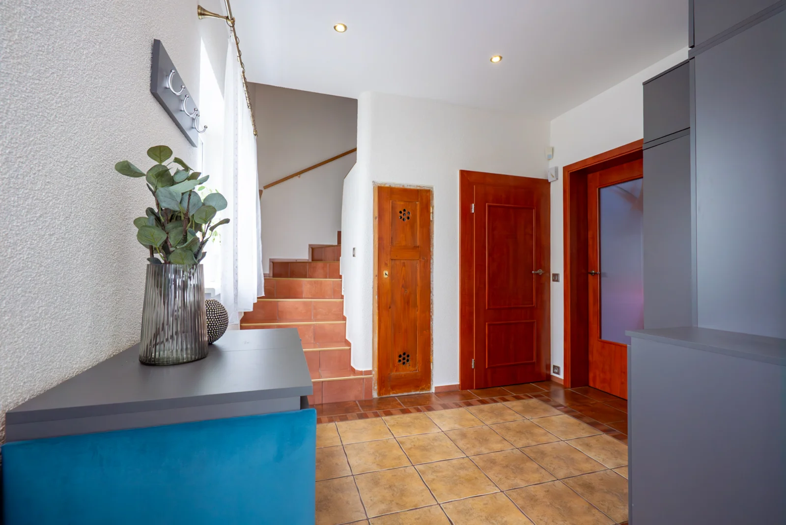 Přízemí a první patro odděluje vstupní hala a dům tak lze snadno předělat na dvougenerační bydlení. V jednom z horních pokojů jsou připraveny přípojky na vodu a odpad - to kdybyste zatoužili po druhé kuchyni. V současnosti jsou v prvním patře dva dětské pokoje a světlá koupelna s WC.